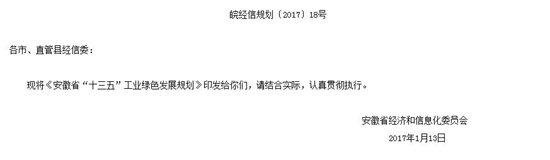 安徽省“十三五”工業綠色發展規劃發布。綠色發展規劃指出到到2020年,全省工業綠色發展水平明顯提升,綠色制造體系初步建立。