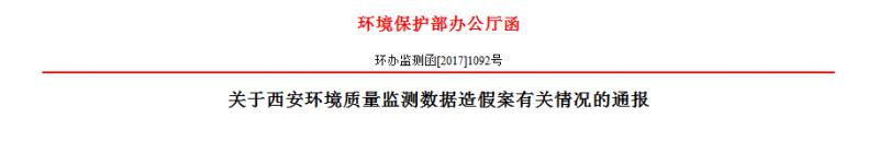 環保部:關于西安環境質量監測數據造假案有關情況的通報