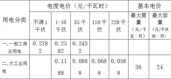 注:1、上表所列價格含增值稅、線損及交叉補貼,不含政府性基金及附加。