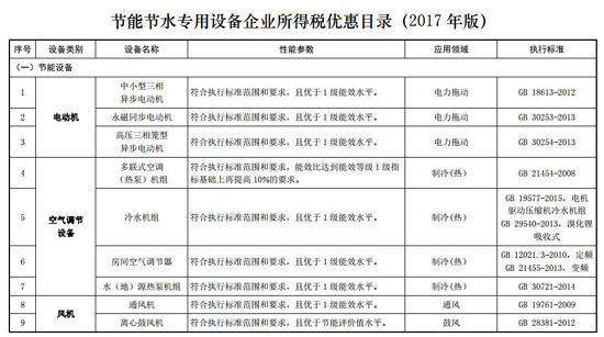 四、本通知所稱稅收優惠政策規定條件,是指《節能節水專用設備企業所得稅優惠目錄(2017年版)》和《環境保護專用設備企業所得稅優惠目錄(2017年版)》所規定的設備類別、設備名稱、性能參數、應用領域和執行標準。