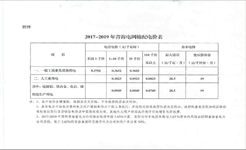 附件:2017-2019年青海電網輸配電價表