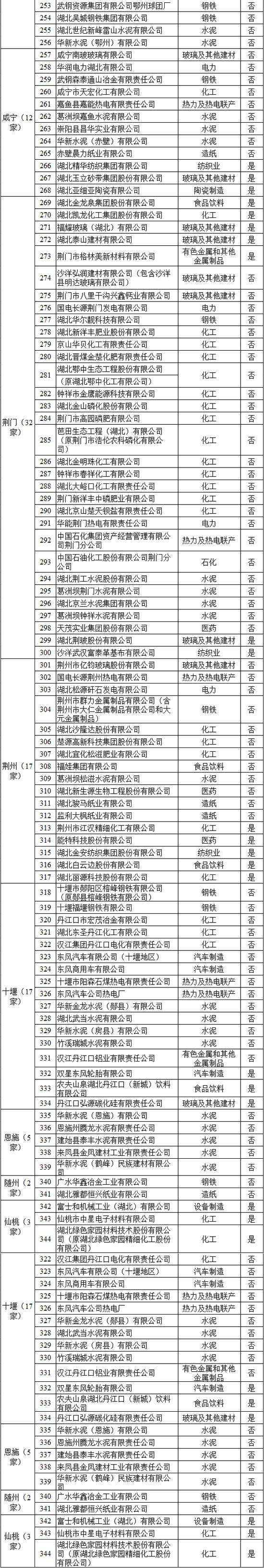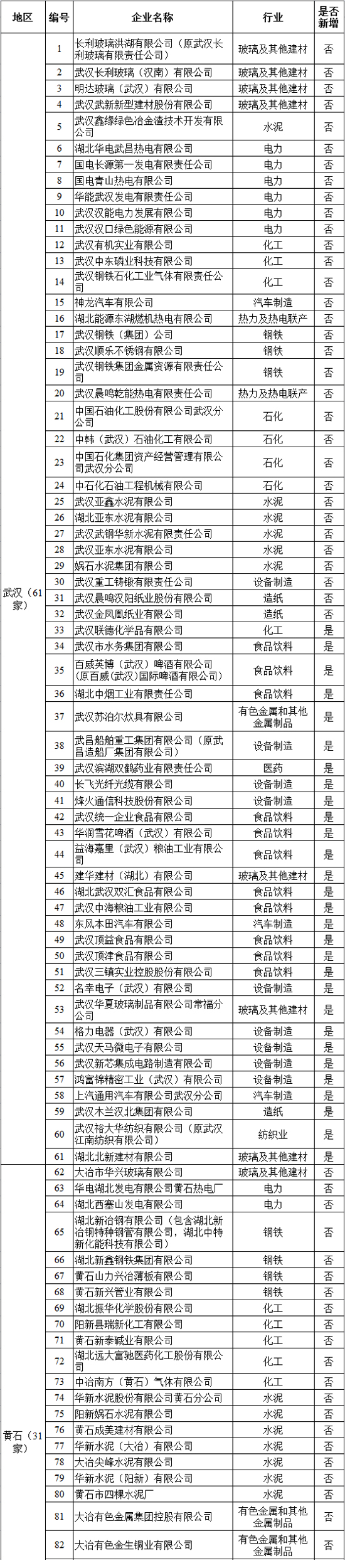 湖北省2017年納入碳排放配額管理企業(yè)清單