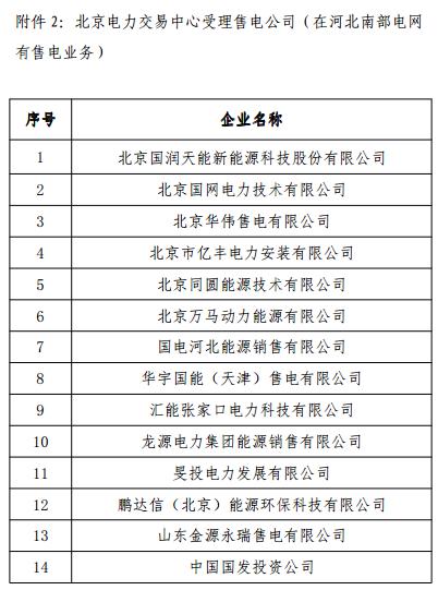 11月17日,河北電力交易中心發布了《關于售電公司公示結果的公告》,公告稱10月17日至11月16日,河北電力交易中心受理河北萬煦售電有限公司等7家售電公司,以及北京電力交易中心受理并在河北南部電網有售電業務的北京國潤天能新能源科技股份有限公司等14家售電公司注冊申請材料進行了公示,公示期間未收到異議,這21家售電公司注冊手續自動生效。