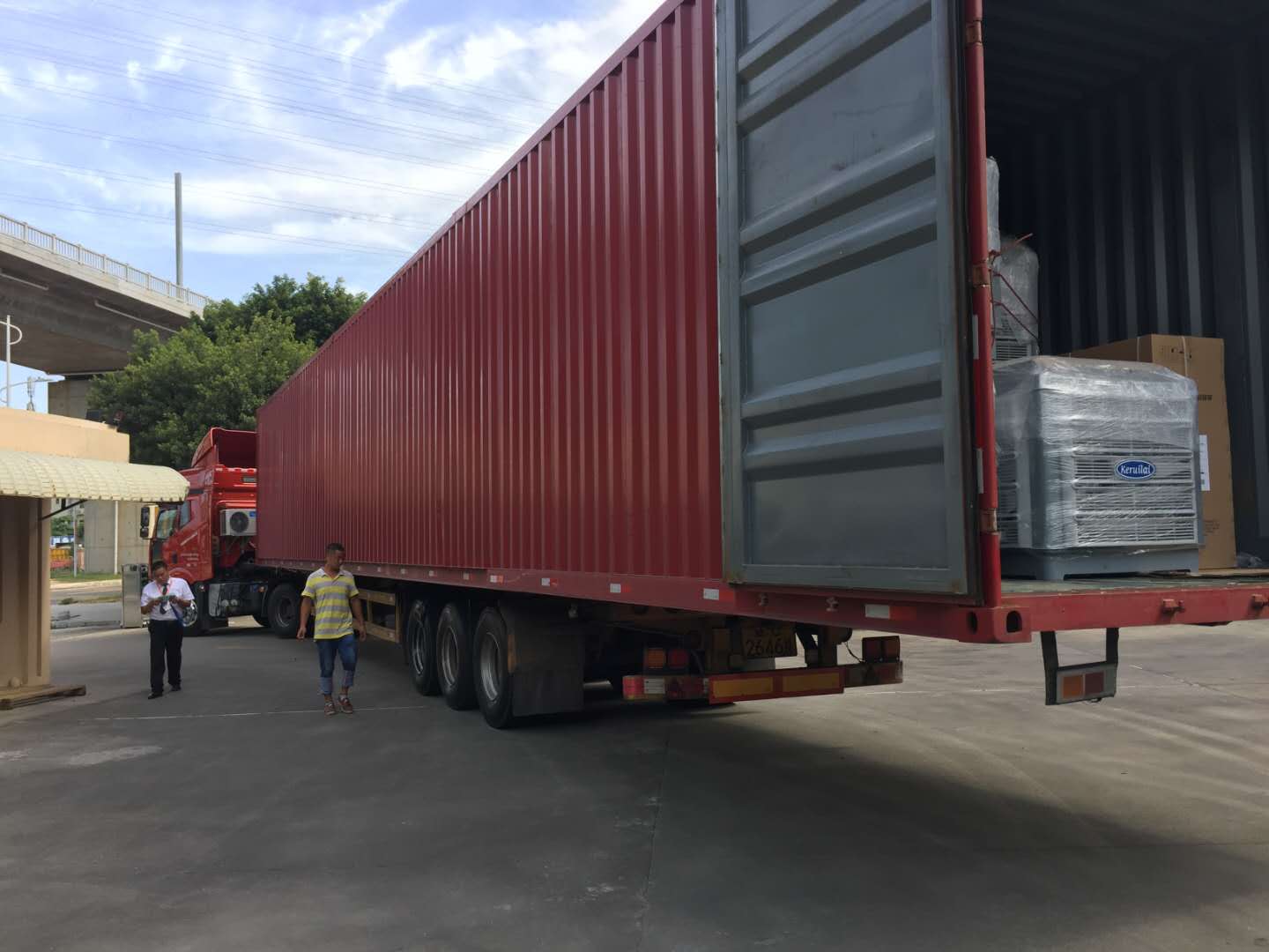 22.5米車廂整整一車科瑞萊工業(yè)環(huán)保冷風(fēng)機(jī)空調(diào)KD18機(jī)器整裝待發(fā),謝謝客戶對我們科瑞萊品牌的信任與支持。