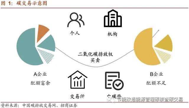 碳交易市場是由政府通過對能耗企業的控制排放而人為制造的市場。通常情況下,政府確定一個碳排放總額,并根據一定規則將碳排放配額分配至企業。如果未來企業排放高于配額,需要到市場上購買配額。與此同時,部分企業通過采用節能減排技術,最終碳排放低于其獲得的配額,則可以通過碳交易市場出售多余配額。雙方一般通過碳排放交易所進行交易。