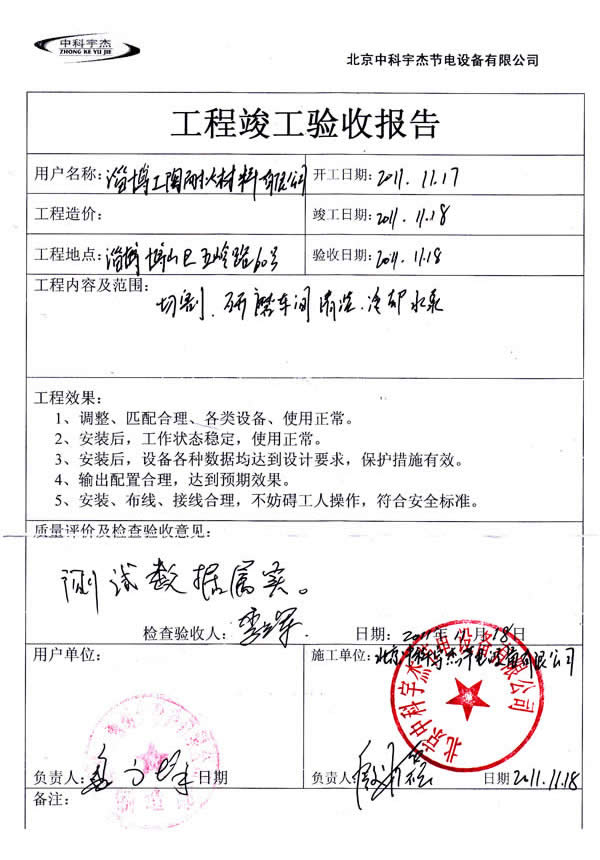經過我們公司工程師的分析,有較大的節電空間,經測試安裝,幾臺設備的節電效果分別達到21.7%、25.9%、26.1%和40%。投資回報期1.5年。