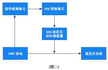 由圖二所示,在10KV高壓開關柜進線處并聯安裝SVG動態無功補償裝置,基本原理是利用可關斷大功率電力電子器件(如IGBT)組成自換相橋式電路,經過電抗器并聯在電網上,適當地調節橋式電路交流側輸出電壓的幅值和相位,或者直接控制其交流側電流,就可以使該電路吸收或者發出滿足要求的無功電流,實現動態無功補償的目的。
